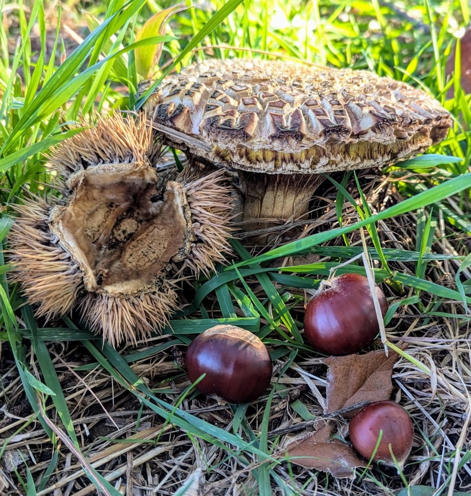 We have fully prepared to inoculate Chinese chestnut seedlings using the Mother Tree Treatment. In March, we will be planting stratified chestnuts that should be just beginning to germinate (these seeds are currently stratifying in a refrigerator in peat moss). These will be seeded two per planting site in a grid pattern, underneath a two-by-ten row of Chinese chestnut trees that are on a 20′ by 20′ spacing. This area is part of a larger orchard that is completed protected by permanent metal deer fencing. These 20 “Mother Trees” were observed in both June and October 2025 to have flushes of the presumed Boletus variipes fagicola growing underneath.