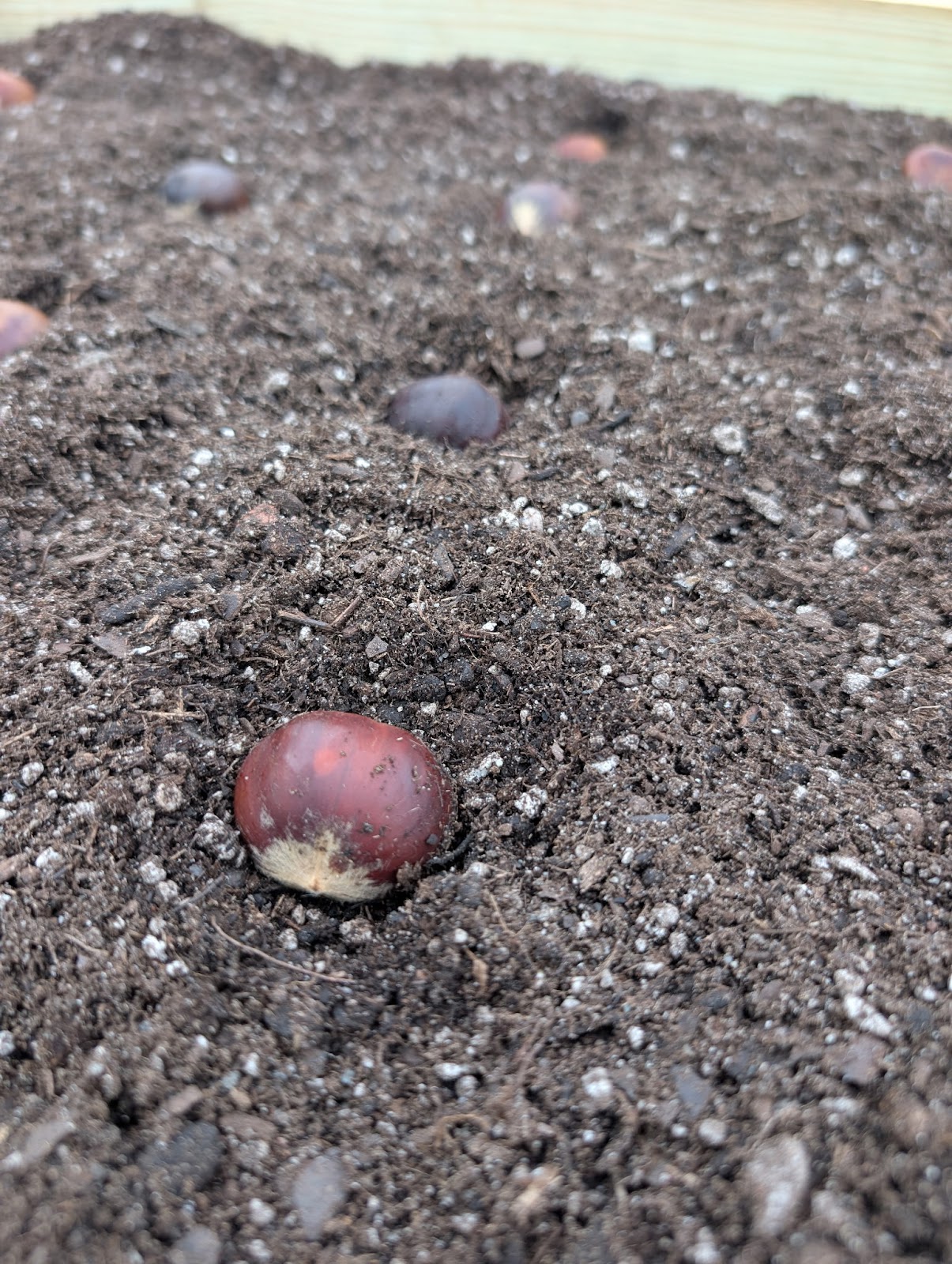 Thomas says that our King Boletes are successfully growing on the Petri dishes, see his video explanation here. Chris Smyth at Deer Orchard Nursery in Cincinnati has been watching the late-planted chestnuts begin to germinate. He tried a delayed germination technique to make the trees to order, such that the seedlings would not have been growing for very long before we could expect to see King Boletes in spring 2025. Chestnut seedlings started germinating but the germination rate to date has been much lower than when germinating chestnuts early in spring.